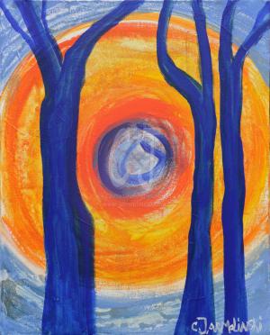 The Silence of the Rising Sun I, II and III Zen Art are a series of smaller paintings evolved after a period of extensive meditation. I enjoy painting my feelings and finding my center. Writing meditations in addition to painting leaves a mark on my works.